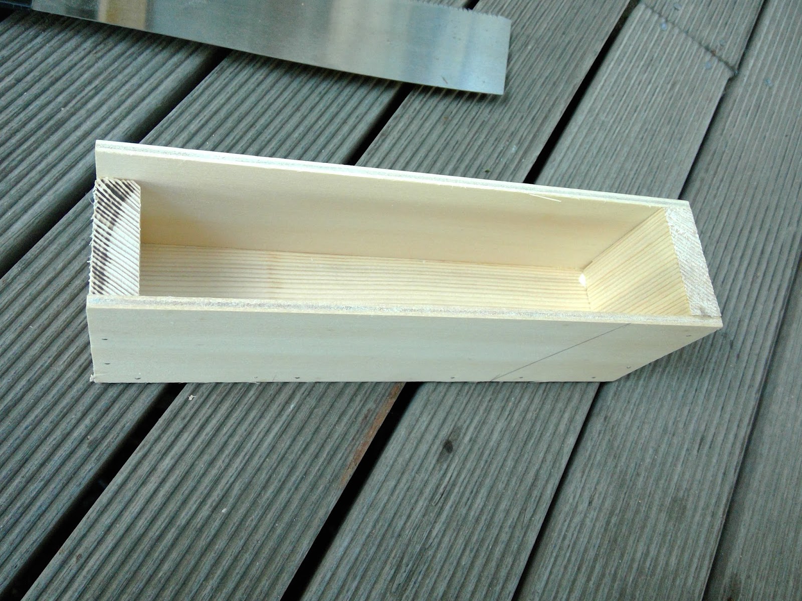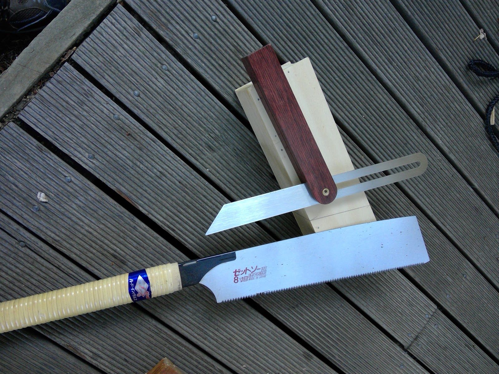 Mark a nice angled line across the box and cut off the lid. It is a good chance to explore Japanese saws. |
