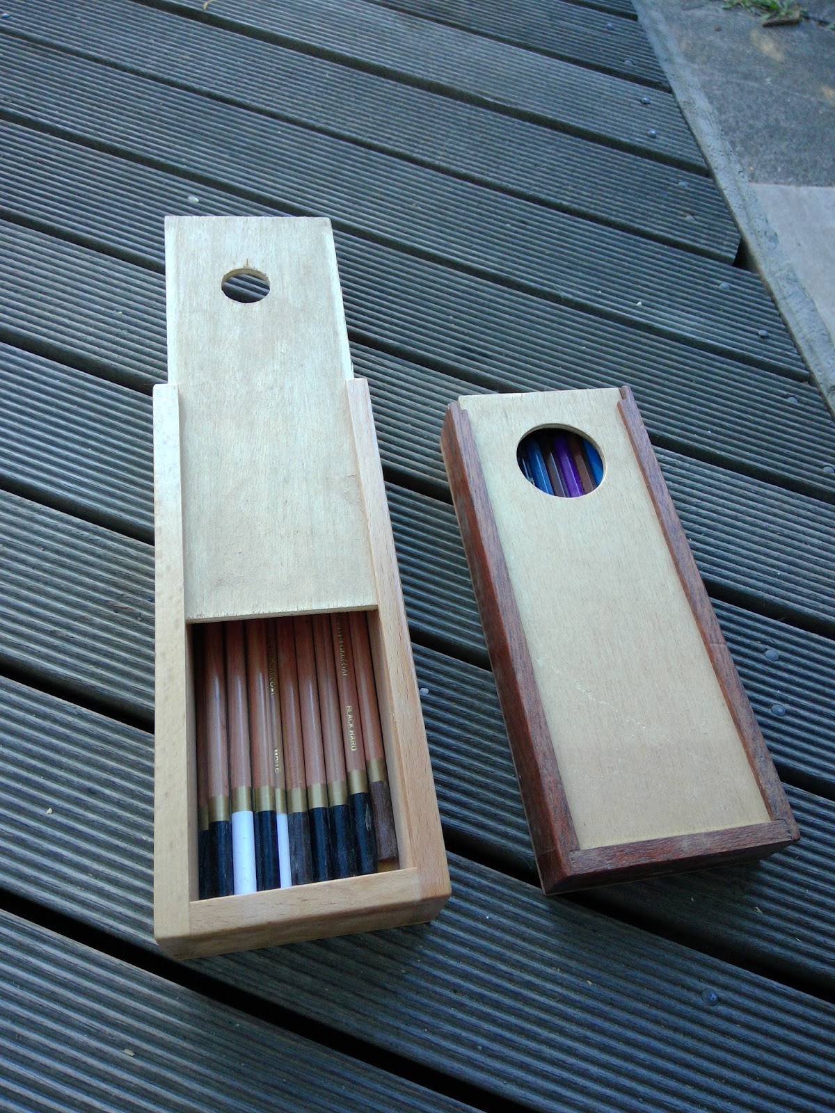 There is a tradition in Melbourne secondary schools that has twelve year olds in their first woodwork lessons making a pencil case. Regardless of how ordinary the results may be, these things end up with magnificent decoration. During boring lessons they are canvas for expression of everything from undying love for rock stars to intense hatred of evil teachers. This lesson has crossed generations. Parents almost expect their child to bring home a pencil case and exploit the moment to compare the work of father and son. Even the style is set. They are usually like the ones photographed below.