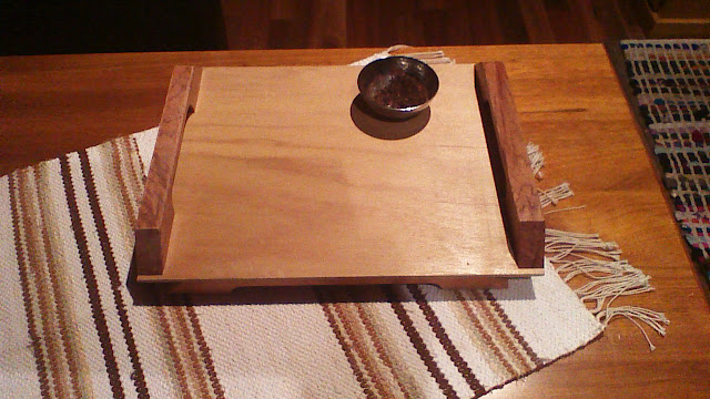 Teaching can be unpredictable. The best prepared lesson can be bummer! But, for this tray, all the stars aligned themselves. We sanded, constructed, then lacquered. As that happened we all giggled over inappropriate jokes. Our session progressed, and finished, in warm happiness. Was it the tray? Was it the people? There were five pieces of wood, glue and fixings, all of which were donated. Two wonderful hours in disability. It was just good! Thanks for a nice morning.
