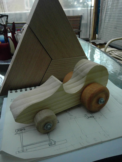 For my part, I don’t think the success of this car had anything to do with gender bias. A lot of my energy had gone into making nice wheels. Each had been shaped with a clever tool on the drill press and when put on a nicely shaped car body the end result was pretty pleasing. Boys made it, then raced them around the floor. Girls enjoyed the act of craft.