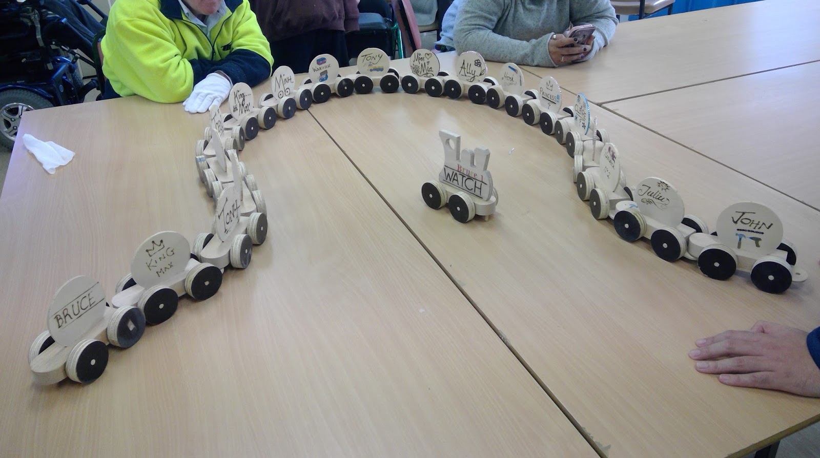 This project was perfect for batch production; the pieces are simple and can be cut in multiples. BUT, the coolest part of all is that when it was done we put our carriages together and created a train of inspiring proportions.